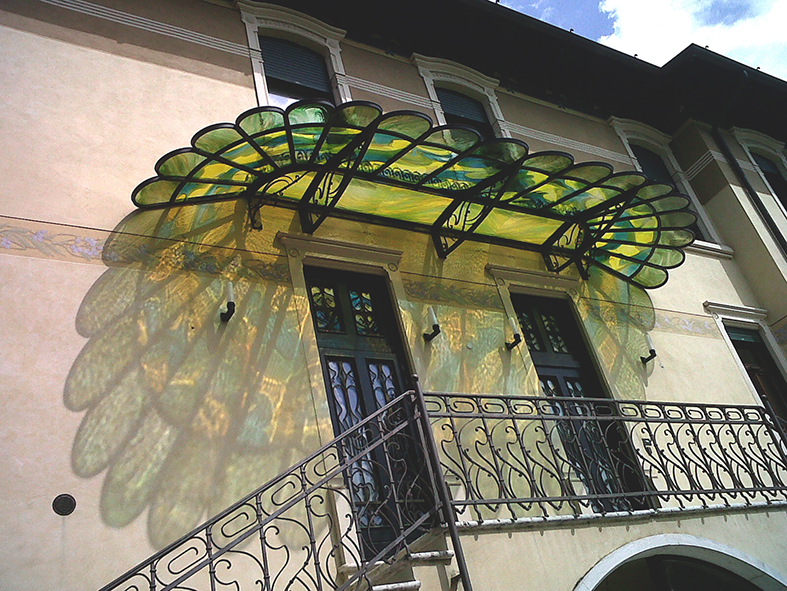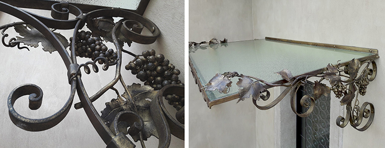 Uno splendido esempio è la piccola tettoia realizzata per la Cantina Ca dei frati di Verona dove gli elementi in ferro battuto divengono forse ancor più importanti della copertura, che in questo caso è stata realizzata quindi con un semplice vetro acidato.